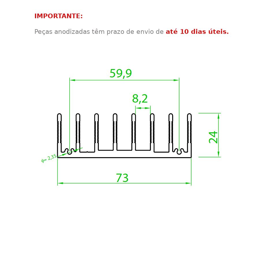 Podemos oferecer este dissipador com acabamento não anodizado a pronta entrega (1 dia útil para processarmos o seu pedido) e também com acabamento anodizado em várias opções de cores (neste caso são em média 11 dias para envio). Consulte-nos (WhatsApp 11 3213-2257) para maiores detalhes!